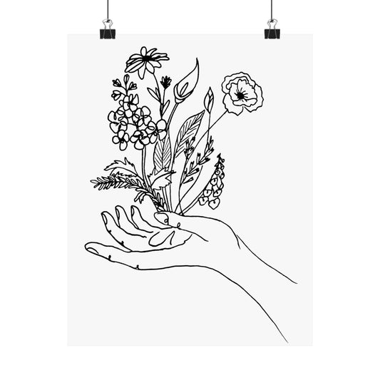 Feminine Line Art - Flowers in Hand - Matte Poster