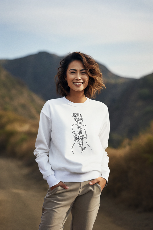 Female Line art - Floral Body - Women's Pullover Sweatshirt