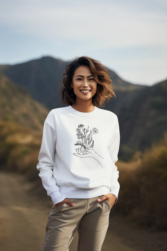 Female Line art - Flowers in Hand - Women's Pullover Sweatshirt