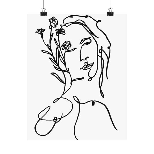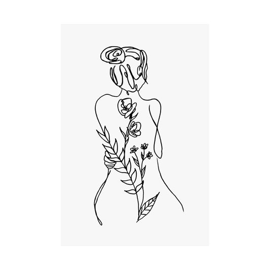 Feminine Line Art - Flowers in Hand - Matte Poster