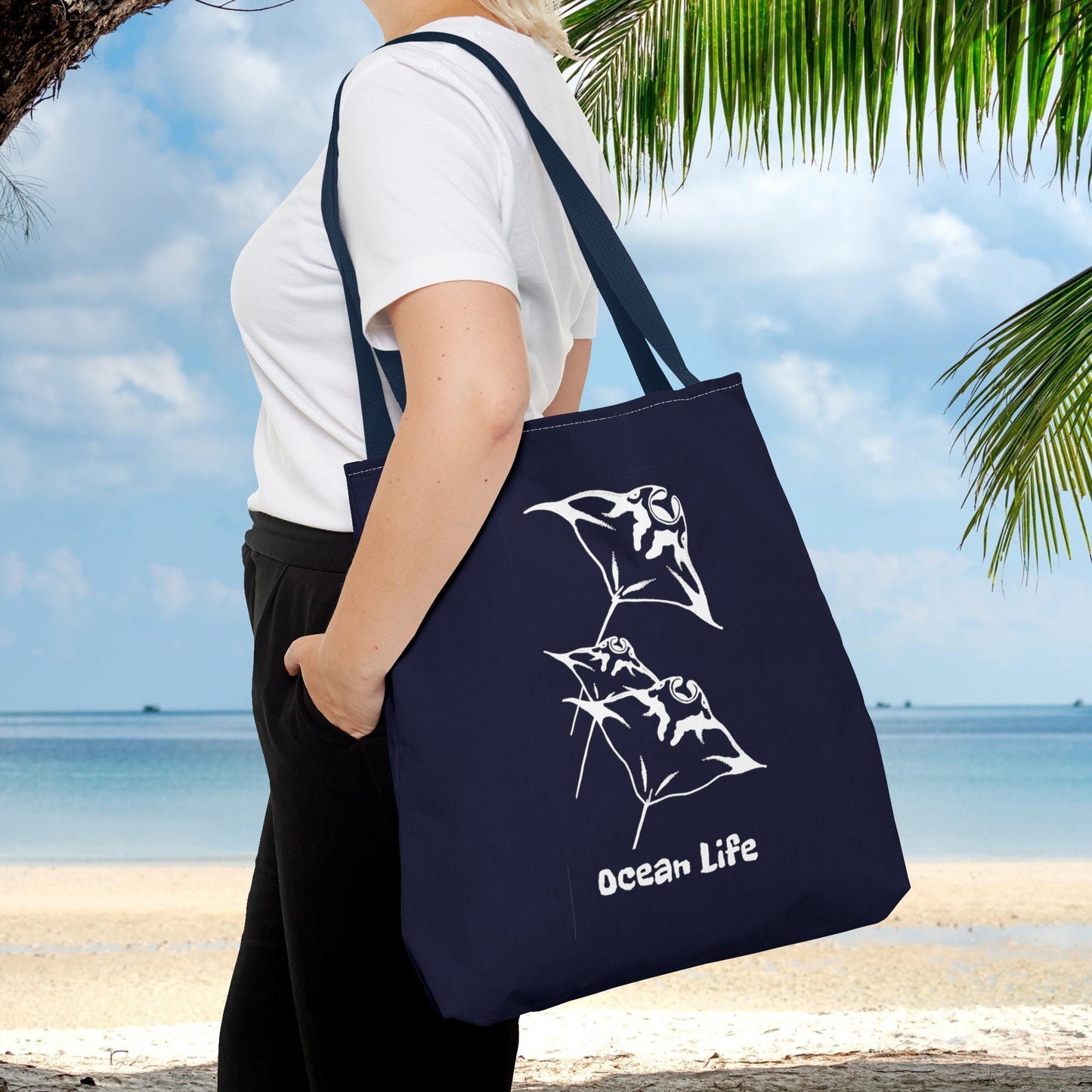 This Manta Ray tote bag is perfect for any outing and is durable enough to carry your favorite items to the beach, the store, or wherever else you go. It is also a great reminder of the Ocean life we all are responsible for helping to thrive! This tote bag is durable so it will last a long time preventing you from using single-use items that tend to end up in landfills and the ocean.